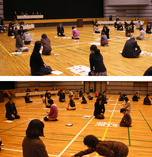 市内の児童生徒が参加して、「牧水かるた」を使ったかるた取りを行います。
